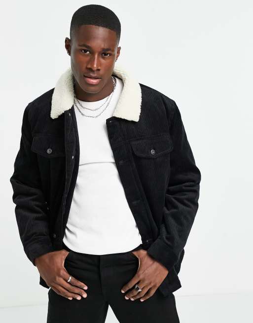 Topman cord jacket with collar in black ASOS